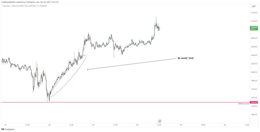 ColdBloodShill stwierdził, że Ethereum może powrócić do regionu 1900-2000 USD przed wznowieniem poprzedniego trendu wzrostowego. Napisał na Twitterze, że: