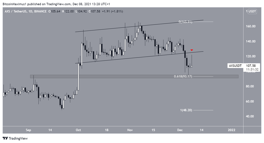 Axie Infinity (AXS) od 4 października handluje wewnątrz wzrostowego kanału równoległego. Jednak w dniu 4 grudnia nastąpiło załamanie z niego i cztery dni później został on potwierdzony jako opór (czerwona ikona).