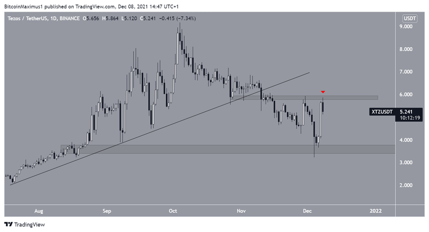 Tezos (XTZ) spada od dnia 4 października, kiedy to osiągnął ATH na poziomie 9,17 USD. Ruch w dół doprowadził do dołka na poziomie 3,22 USD, który został osiągnięty 4 grudnia.