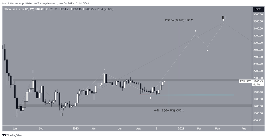BluntzCapital uważa, że liczba fal Elliotta jest bycza, a cena rozpoczęła nowy ruch wzrostowy. Sugeruje on, że choć możliwe jest początkowe cofnięcie, Ethereum ostatecznie wzrośnie znacznie powyżej 2000 USD.