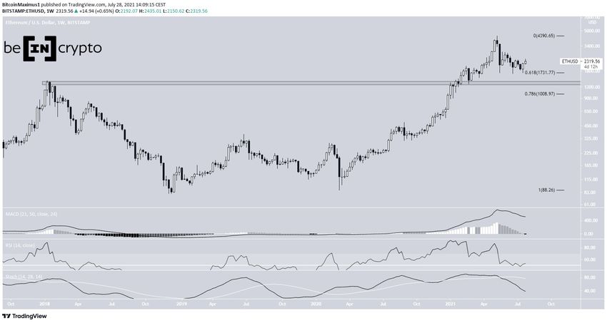 Ethereum (ETH) utworzyło formację podwójnego dna w obszarze horyzontalnego wsparcia na poziomie 1730 USD.