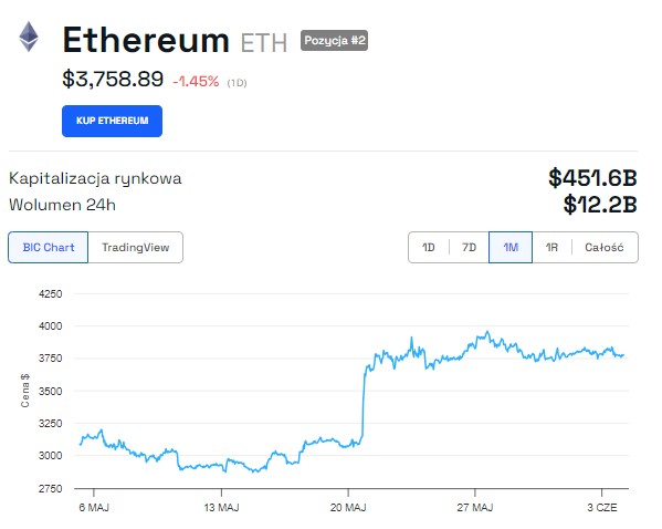 Rynek już zareagował na wiadomości o Ethereum ETF. Cena tej kryptowaluty wzrosła o 33% od połowy maja i osiągnęła niemalże 4 000 USD. Wzrost popytu na ETH dzięki ETF-om może jeszcze bardziej podnieść jego cenę. Inwestorzy są bowiem coraz bardziej zainteresowani jego przyszłością. Większy popyt może natomiast prowadzić do dalszych wzrostów cen.