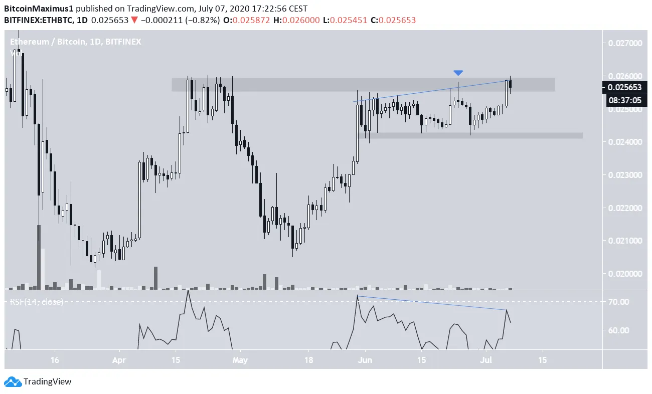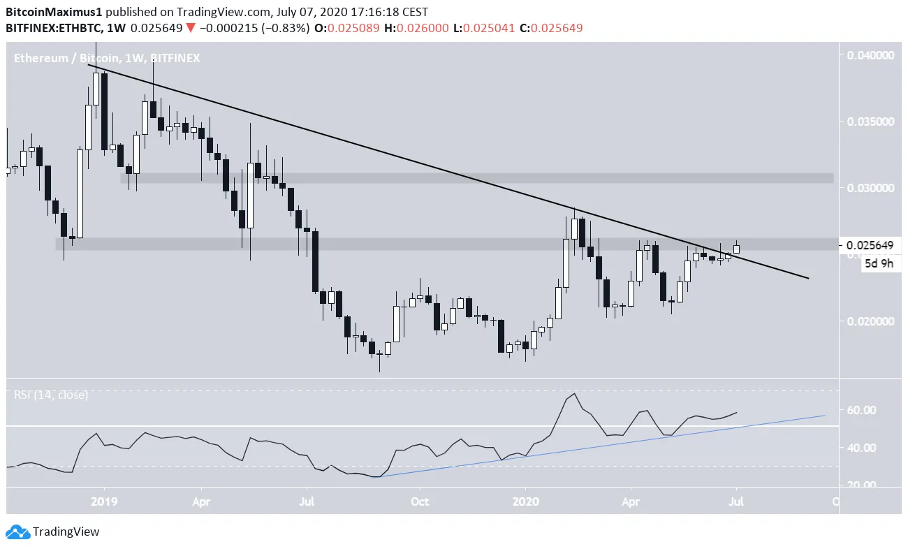 Z drugiej strony spadek poniżej tego poziomu oznaczałby, że poprzednie wybicie nie było uzasadnione i prawdopodobnie ETH spadłoby w kierunku wsparcia na poziomie 0,0242 satoshi.