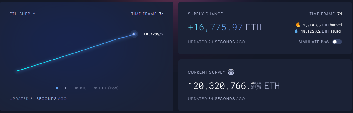 Spadek popytu zwiększył podaż ETH, podważając deflacyjne efekty pierwotnie zamierzone przez EIP-1559. W rezultacie ETH powróciło do bycia walutą inflacyjną, regularnie emitując więcej tokenów niż je spala. Według danych od ultrasound.money, od połowy kwietnia dodano ponad 16 775 tokenów ETH do ogólnej podaży. Analitycy CryptoQuant w niedawnym raporcie stwierdzili: