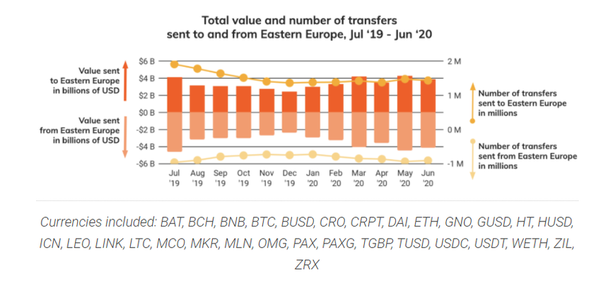 Według raportu Europa Wschodnia na swoich rynkach dąży do „silnej, podstawowej adopcji kryptowalut”. Szczegółowo opisano tam, że w ciągu 12 miesięcy od czerwca 2019 r.:
