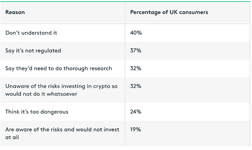 Obecnie istnieje coraz więcej dowodów na to, że ci, którzy dostają kryptowaluty, kupują je. Podczas gdy ci, którzy tego nie robią, są zagrożeni pozostaniem w tyle. Nadal istnieje znaczna liczba mieszkańców Wielkiej Brytanii, którzy jeszcze nie zanurzyli swojego palca kryptowalutach. A większość z nich wydaje się zdeterminowana, aby nigdy nie zanurzyć się w tej wodzie.