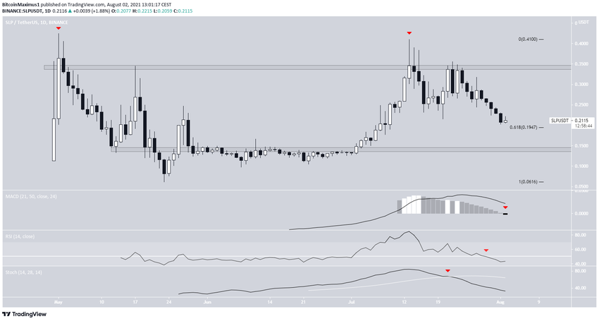 SponsoredObecnie SLP notowany jest tuż powyżej poziomu wsparcia zniesienia 0,618 Fib przy 0,195 USD. Przełamanie poniżej tego obszaru może wywołać gwałtowny spadek w kierunku 0,145 USD.
