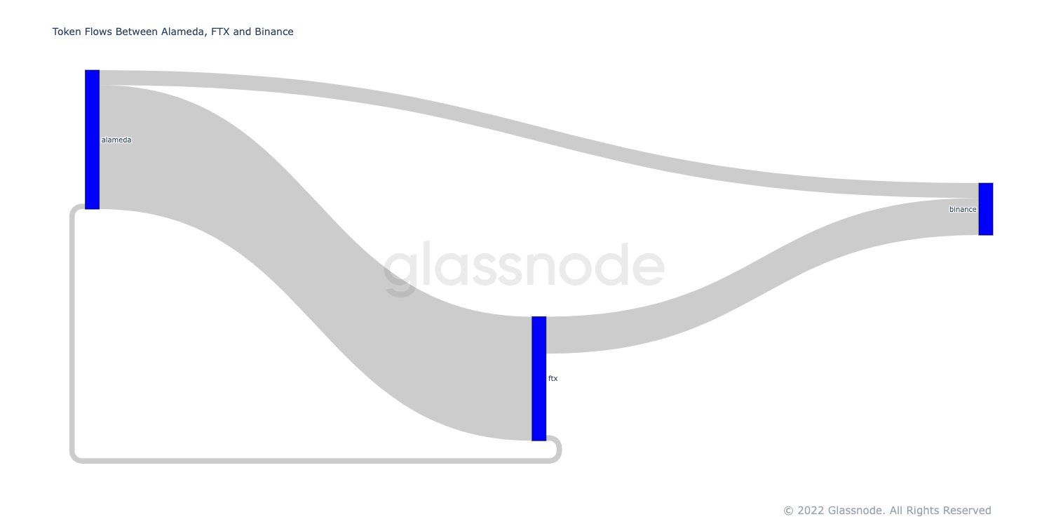 Na tle wydarzeń wokół FTX, analitycy z Glassnode przeprowadzili badanie wzajemnych powiązań przepływów sieciowych w ciągu ostatniego roku między FTX, Alameda Research i Binance.