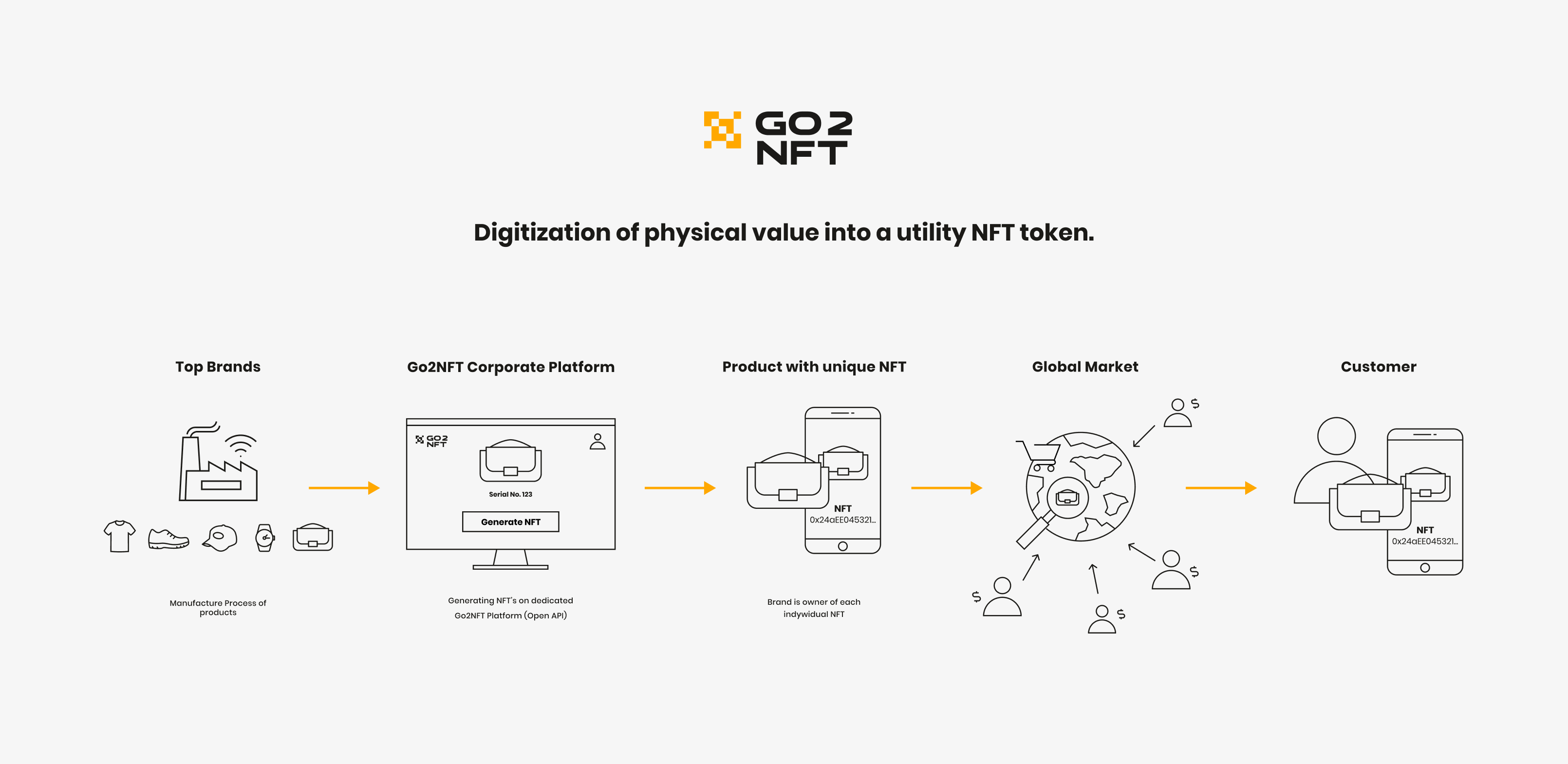 Dzięki najnowszej technologii NFT wszystkie Twoje rzeczy – przedmioty, aktywa, pieniądze – mogą istnieć jednocześnie w dwóch miejscach: wirtualnym i realnym. Wszystko to przez bezpieczny, potwierdzony unikalnym certyfikatem oryginalności, proces digitalizacji produktów fizycznych w cyfrową wartość.