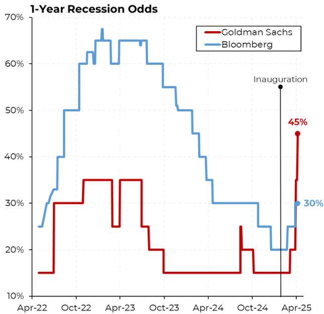 “Goldman Sachs teraz przewiduje 45% szans na recesję w ciągu najbliższego roku.”