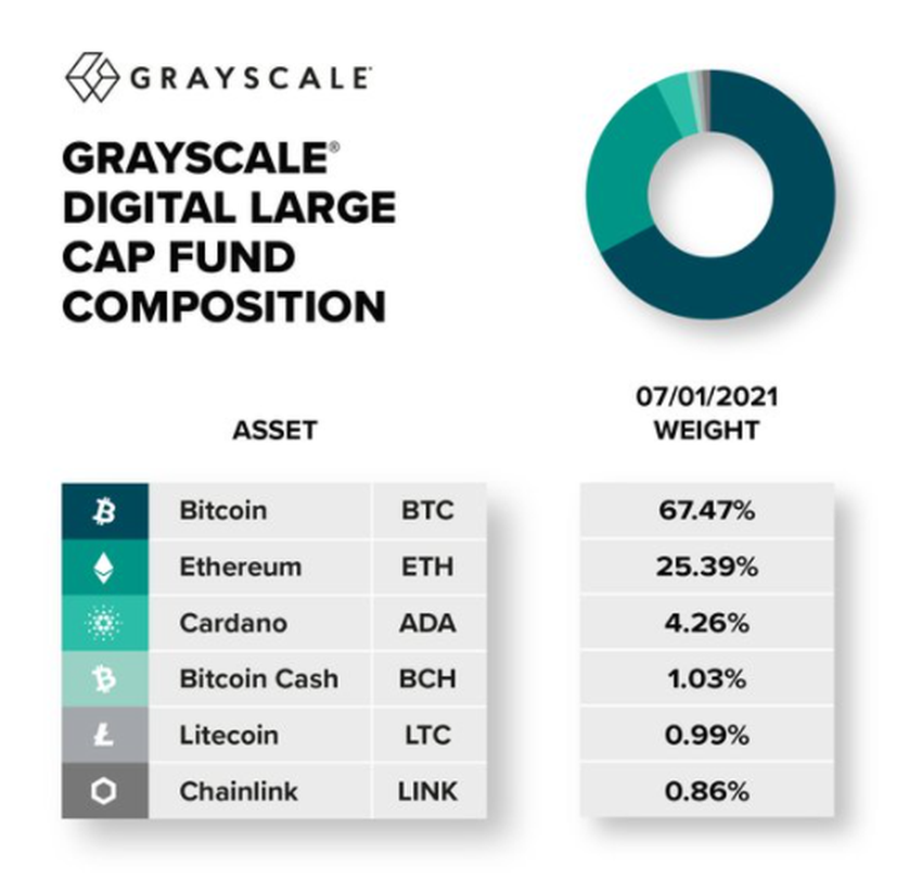 Witamy na pokładzie, Cardano. Dostosowaliśmy portfel Grayscale Digital Large Cap Fund, aby teraz zawierał ADA. Wcześniej Large Cap Fund nie posiadał ADA. Ruch, aby dodać piątą co do wielkości kryptowalutę pod względem kapitalizacji rynkowej, odnosi się do ‘pasywnej, opartej na zasadach strategii funduszu, która ma na celu zapewnienie ekspozycji na 70% rynku aktywów cyfrowych.’
