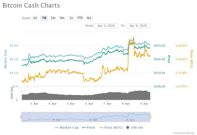 Na początek wiadomość umiarkowanie dobra. Cena BCH poszła w górę. Jeszcze o 4:30 cena Bitcoin Casha wynosiła zaledwie 250 dolarów. W ciągu 8 godzin cena podskoczyła do 277 dolarów, co dało ponad 10% zysku. Przed samym halvingiem (14:20) zdołała ona jednak jeszcze spaść do 264 dolarów i ta cena utrzymuje się do teraz.