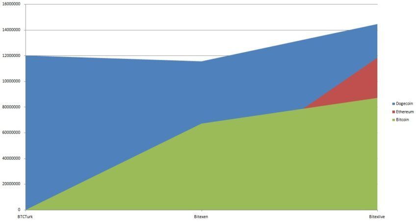 Jest to więcej niż wolumen obrotu BTC i ETH łącznie. Te dwa ostatnie odpowiednio zgromadziły wolumeny handlowe w wysokości 154,4 mln USD i 142,6 mln USD. Trzy giełdy, które zostały zbadane to BTCTurk, Bitexen i Bitexlive.
