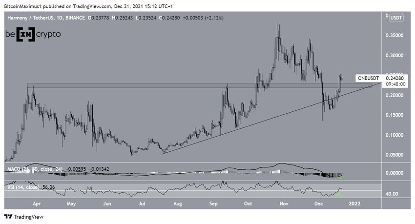 Następnie miło miejsce znaczące odbicie i ONE odzyskał zarówno linię wsparcia, jak i horyzontalny obszar 0,225 USD.