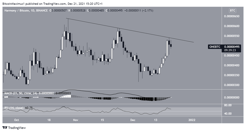 Harmony (ONE) może potwierdzić swoje bycze odwrócenie poprzez przebicie obecnej opadającej linii oporu i obszaru oporu 0,287 USD.