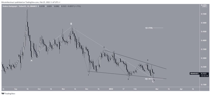 Hedera Hashgraph spada od czasu osiągnięcia, 16 września, najwyższego w historii poziomu 0,57 USD. 12 listopada cena podjęła kolejną próbę podniesienia się, ale została odrzucona przez długoterminowy obszar oporu 0,43 USD. Ruch w dół doprowadził do najniższego poziomu 0,187 USD w dniu 24 lutego. Biorąc pod uwagę najwyższą cenę w historii, oznaczało to spadek o prawie 64%.