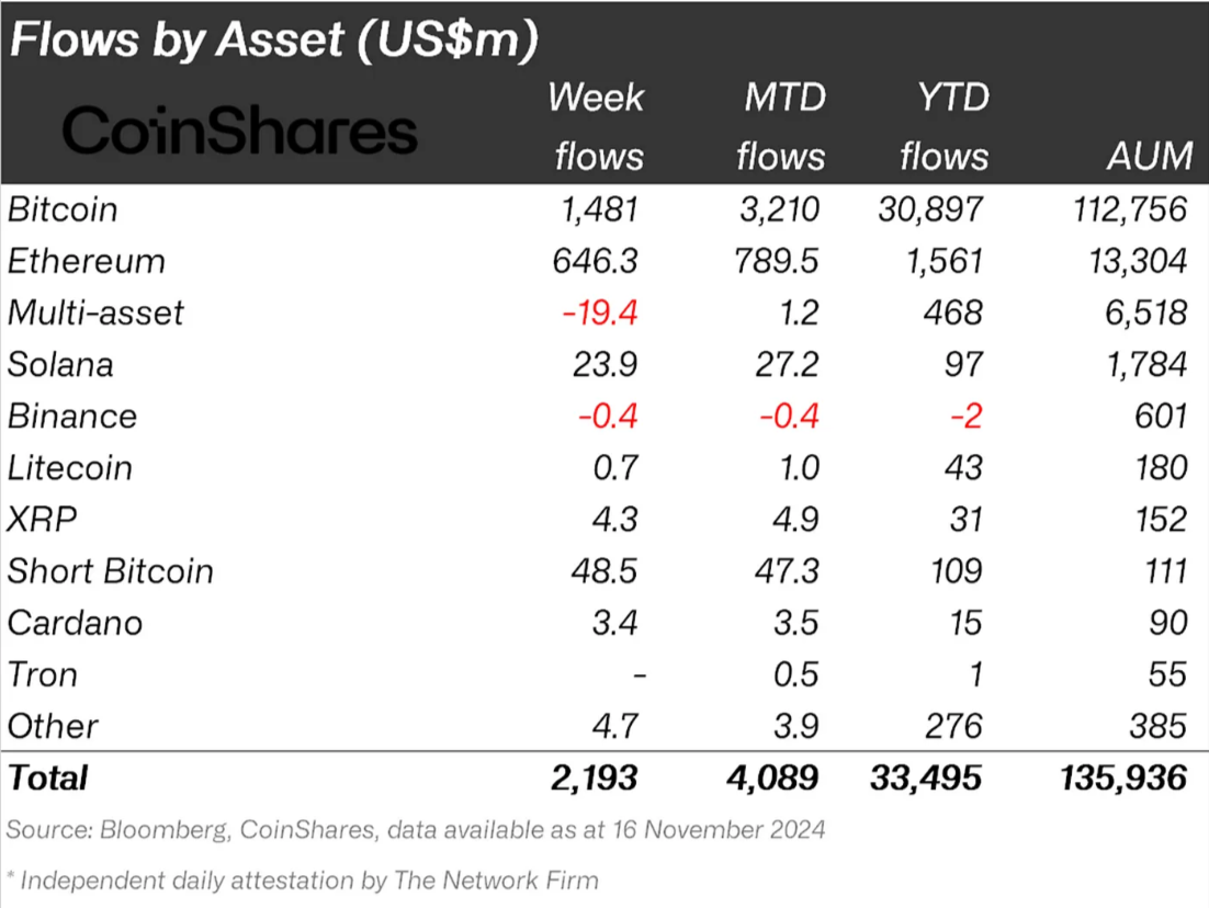 Cena ETH rozpoczęła listopad z imponującym wzrostem o 40%. Jednak historyczne napływy Ethereum – pomimo iż nie zwiększają szybko jego wyceny – pozwalają na stabilizację powyżej 3000 USD.