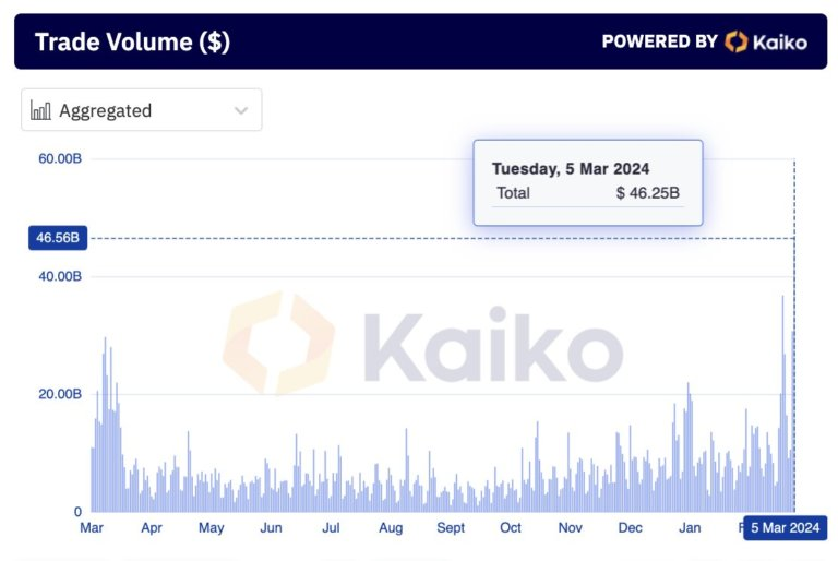 Bitcoin nadal cieszy się zainteresowaniem inwestorów. Na przykład ostatnio wolumen obrotu pierwszą kryptowalutą osiągnął 46,25 mld USD, co było najwyższą wartością od 2021 roku.
