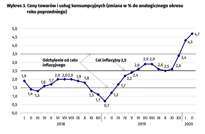 Już w styczniu 2020 roku słyszeliśmy niepokojące dane. Wówczas inflacja rok do roku wyniosła 4,3%, co było znacznym odchyleniem od prognoz Narodowego Banku Polskiego. Już wtedy wielu ekonomistów podejrzewało, iż może być to początek nowego trendu.