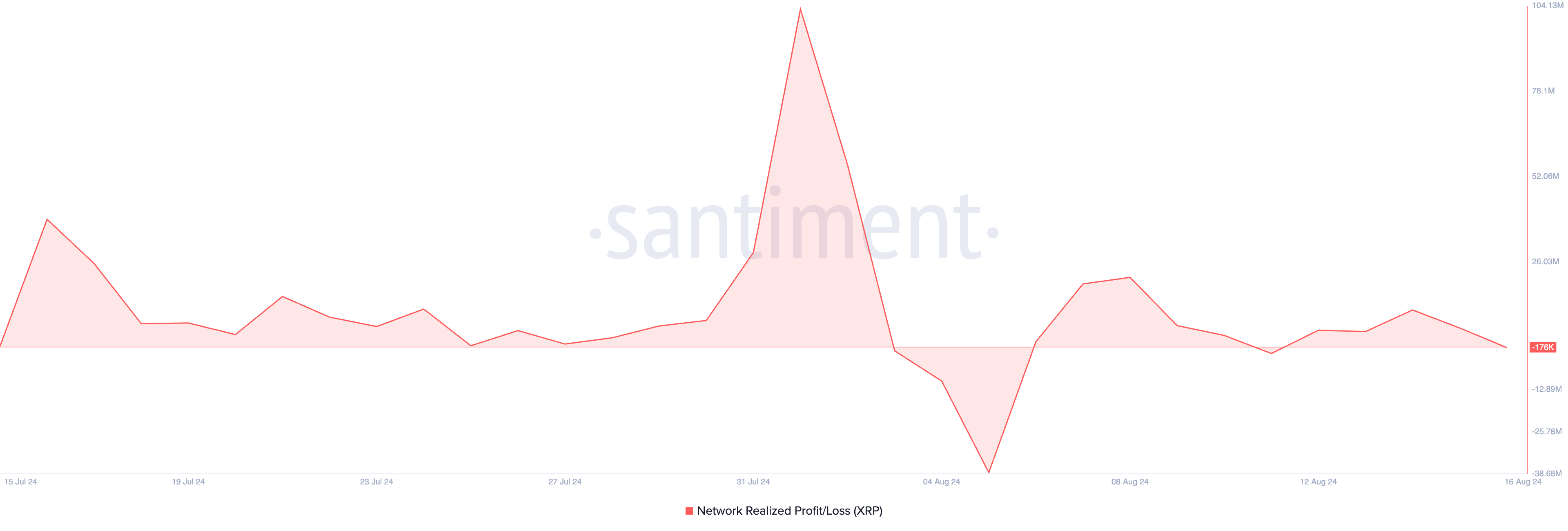 Zmniejszenie płynności na rynku XRP odzwierciedla się w jego negatywnym wskaźniku przepływów pieniężnych Chaikin (CMF). W chwili pisania tego tekstu, wskaźnik znajduje się poniżej linii zerowej i utrzymuje się na tym poziomie od 11 sierpnia.