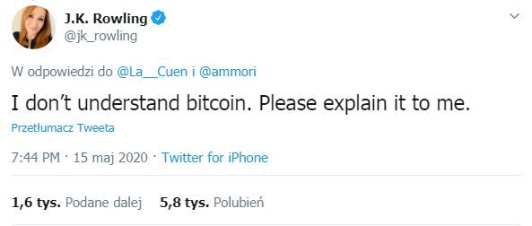 Wszyscy odpowiadaliśmy w swoim życiu na setki takich pytań. Jak jednak mawiał pewien mędrzec: nie ma głupich pytań, są tylko głupie odpowiedzi. Na pewno tą zasadą kierowała się J.K. Rowling, gdy powiedziała, że nie rozumie Bitcoina.