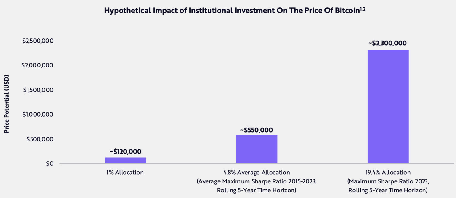Badanie ARK uwzględnia również hipotetyczną sytuację, w której udziały funduszy wymienionych przez analityków do inwestycji w kryptowaluty są alokowane z globalnego kapitału 250 bilionów dolarów.