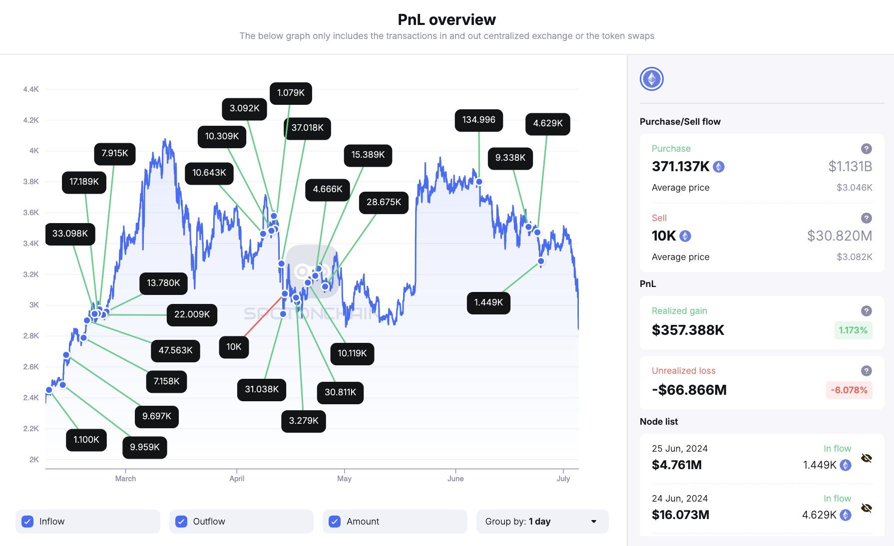 - Następnie kupił 176 117 ETH w kwietniu za pośrednictwem “0x435” po średniej cenie 3177 USD.