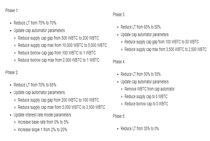 Świadomi potencjalnych ryzyk, BA Labs, firma zajmująca się zarządzaniem ryzykiem w DeFi i kluczowy uczestnik zarządzania protokołem Sky, zaproponowała ostrożne podejście do usuwania ekspozycji na WBTC z aktywów zabezpieczających. Firma przedstawiła stopniowy pięcioetapowy proces, którego pierwszą fazę zaplanowali na 26 września, oczekując na głosowanie.