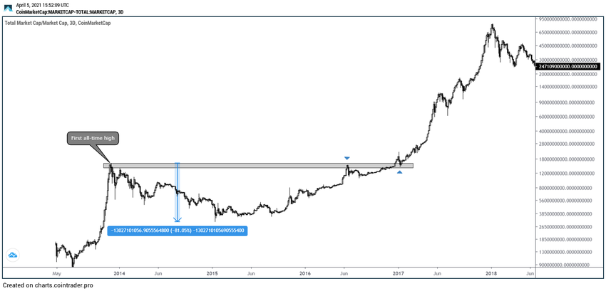 Mierząc od drugiego all-time high, następujący po nim ruch w dół spowodował spadek o 88%.