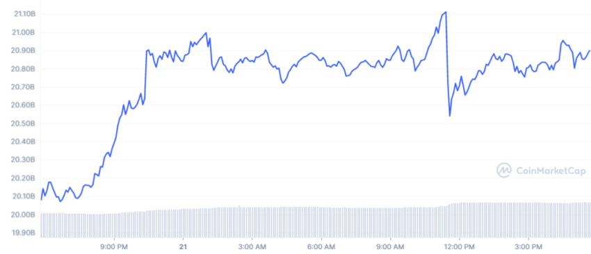 Obecna poprawa na rynku kryptowalut sprawiła, że kapitalizacja rynkowa XRP firmy Ripple po raz pierwszy od września 2022 roku przekroczyła 20 miliardów dolarów, jak wynika z danych CoinMarketCap.