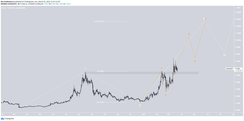 Oczekuje się, że KAVA będzie nadal rosnąć, o ile będzie notowana powyżej oporu z poprzedniego rekordu wszech czasów na poziomie 5,40 USD.