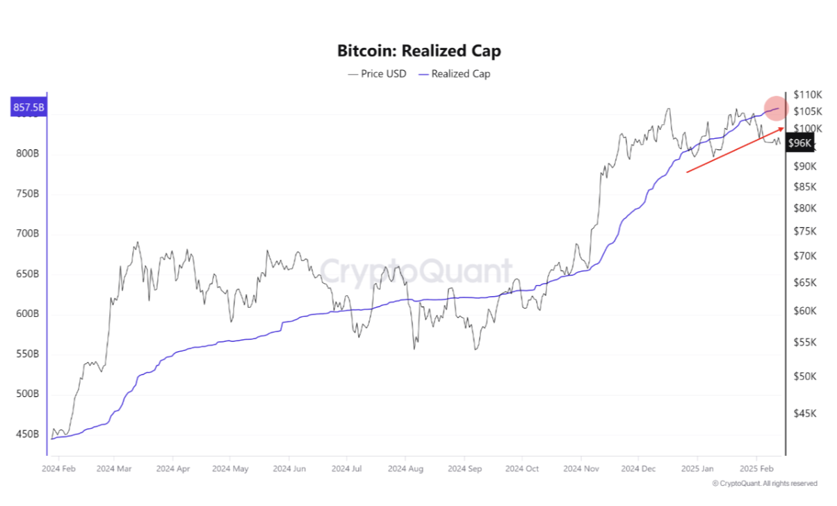 Bitcoin zmaga się z przekroczeniem poziomu 100 000 USD od początku lutego z powodu ostatniej zmienności rynku, która utrzymuje wiodącą monetę w stagnacji. Jednak pojawił się kluczowy sygnał dla Bitcoina. Zrealizowana kapitalizacja rynkowa BTC na poziomie 857 mld USD to istotny wskaźnik, który sugeruje rosnące zaufanie inwestorów. Wzrost tej metryki oznacza, że wiodąca kryptowaluta zmienia właścicieli po coraz wyższych cenach, co może wskazywać na długoterminową akumulację.