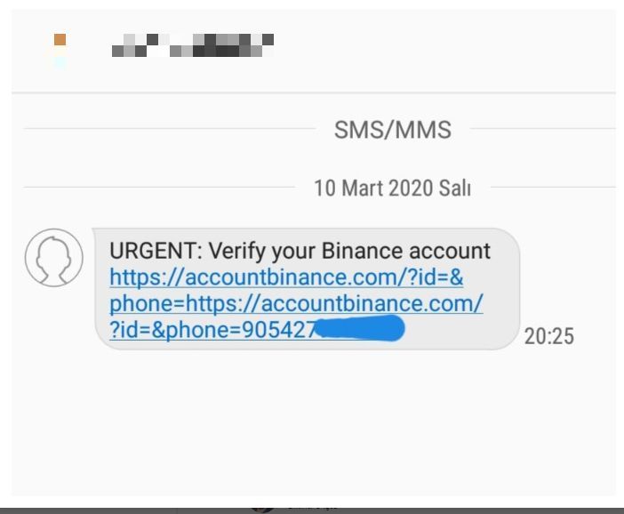 "URGENT: Verify Your Binance Account" şeklinde bir SMS alırsanız kesinlikle linke tıklamayınız.