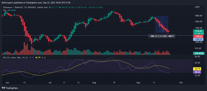 Jednak odwrócenie było nadal kwestionowane, biorąc pod uwagę 27% spadek cen ETH od czasu połączenia.