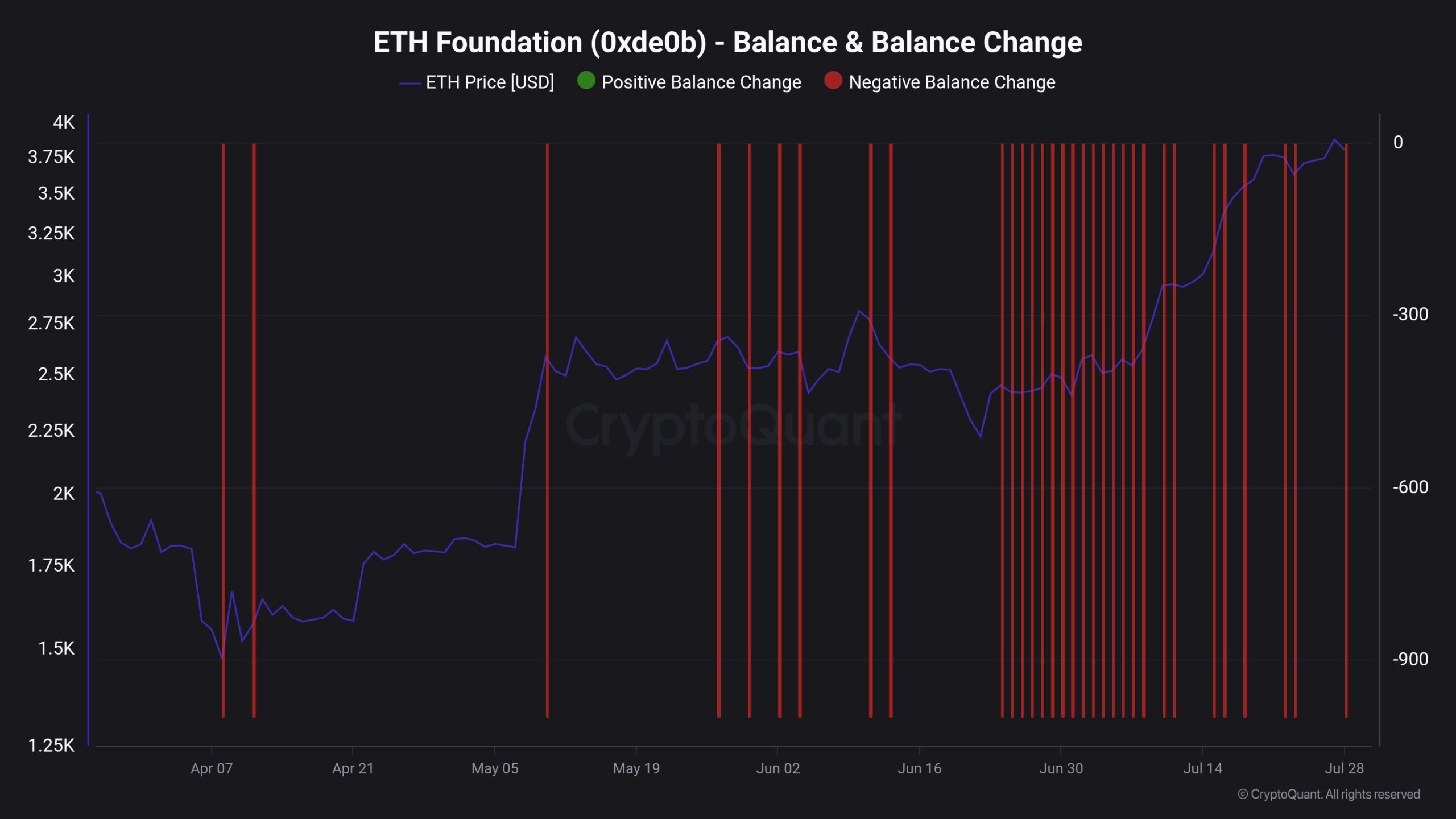 Dane te pokazują, że Fundacja zwiększyła swoją aktywność sprzedażową w lipcu, gdy ETH wzrosło.