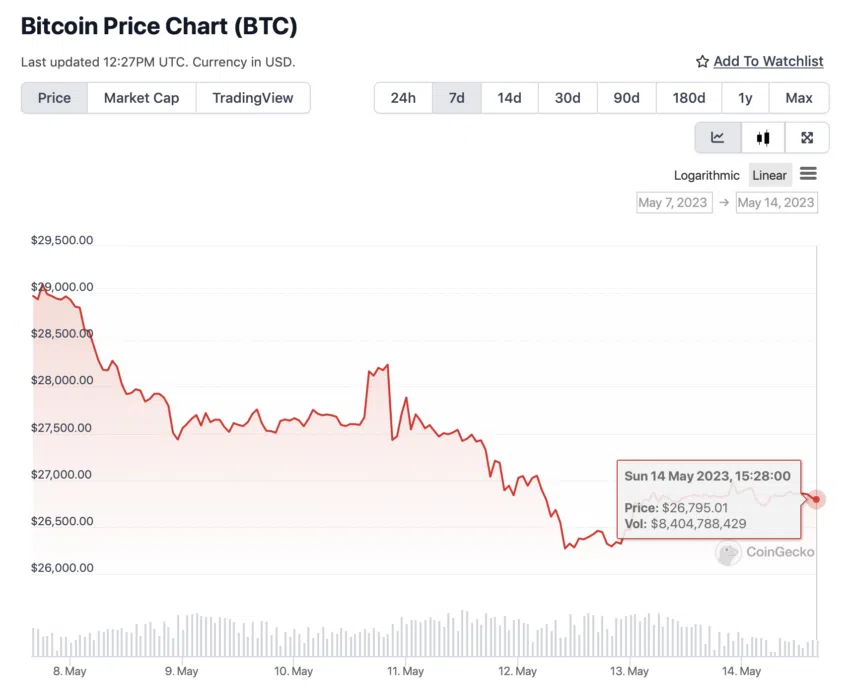 Po osiągnięciu 10-miesięcznego maksimum w kwietniu, rajd cenowy Bitcoina utknął w martwym punkcie. Próby przejścia powyżej psychologicznego poziomu 30 000 USD nie powiodły się w ostatnich tygodniach. W chwili pisania tego tekstu główna kryptowaluta handluje w okolicach 27 800 USD z niewielkim spadkiem o 0,1%.