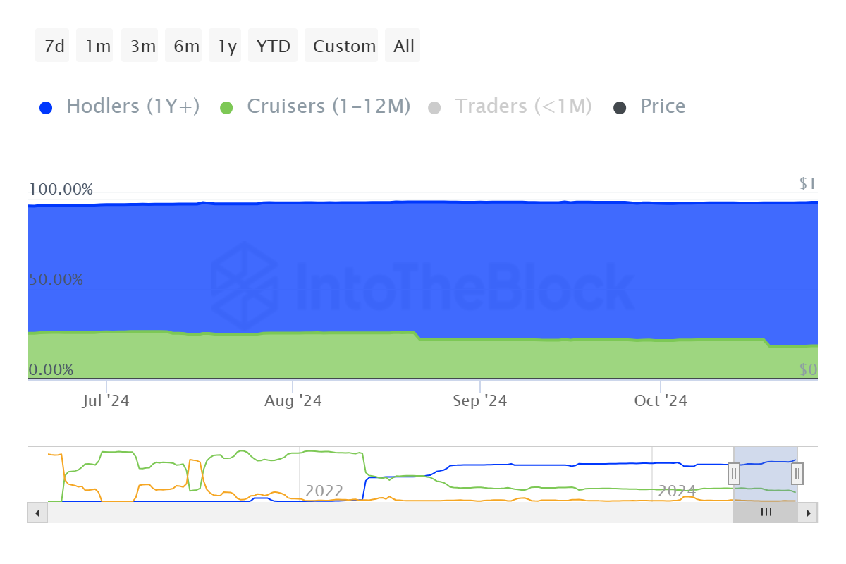 Pomimo obecnych wyzwań cenowych, inwestorzy Shiba Inu wysyłają pozytywne sygnały. Aktualnie trwa wyraźna migracja od krótkoterminowych posiadaczy (STH) do długoterminowych (LTH). Około 4% posiadaczy SHIB przeszło do kategorii LTH, którzy trzymają swoje aktywa przez ponad rok. Ta zmiana wskazuje na rosnące zaangażowanie, sugerując, że inwestorzy zachowują zaufanie do potencjału SHIB pomimo niedawnych wahań cenowych.
