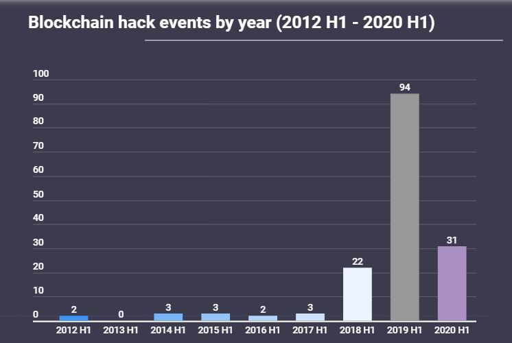 Na podstawie danych historycznych wydaje się, że rok 2020 nie osiągnie rekordowego poziomu z ubiegłego roku, a liczba blockchainowych ataków będzie nadal spadać.