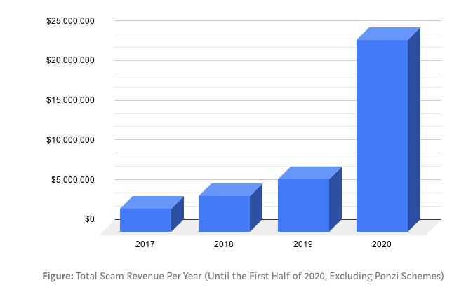 Według bloga Whale Alert bardzo możliwe jest, iż do końca 2020 roku skala oszust będzie rosła nadal i w tym roku wyniesie ona 50 milionów dolarów. Jest to związane wydaje się być związany z większym profesjonalizmem i „agresywnością oszustw”.