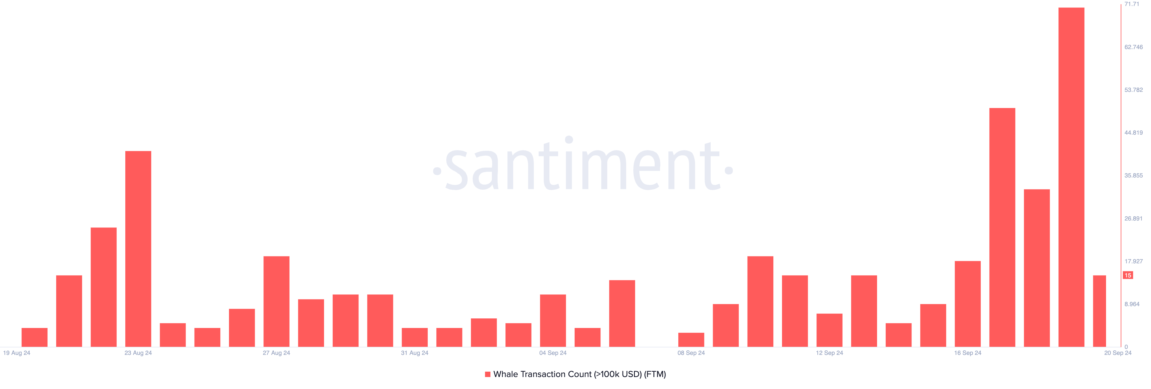 Poprawa nastrojów na rynku po środowej obniżce stóp przyczyniła się do tego wzrostu. Do 19 września liczba transakcji FTM powyżej 100 000 USD osiągnęła 71, najwyższą dzienną sumę w ciągu ostatnich 30 dni.