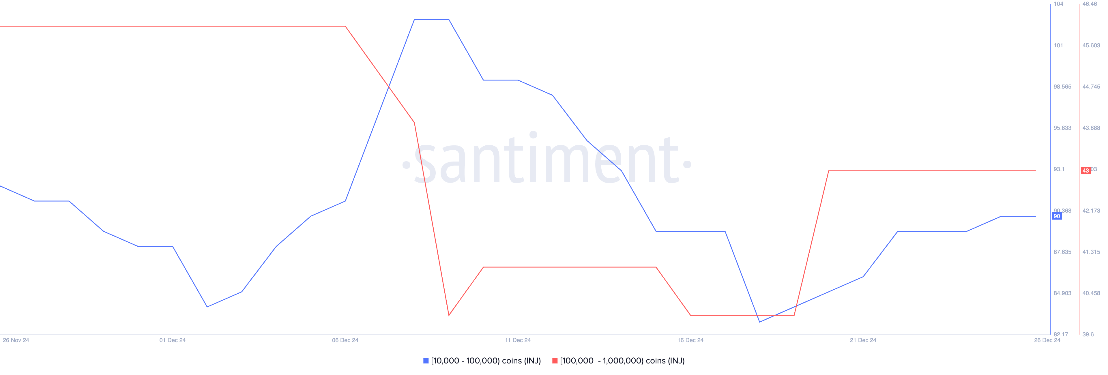 Po okresie bezczynności krypto wieloryby kupują INJ od dnia 19 grudnia.