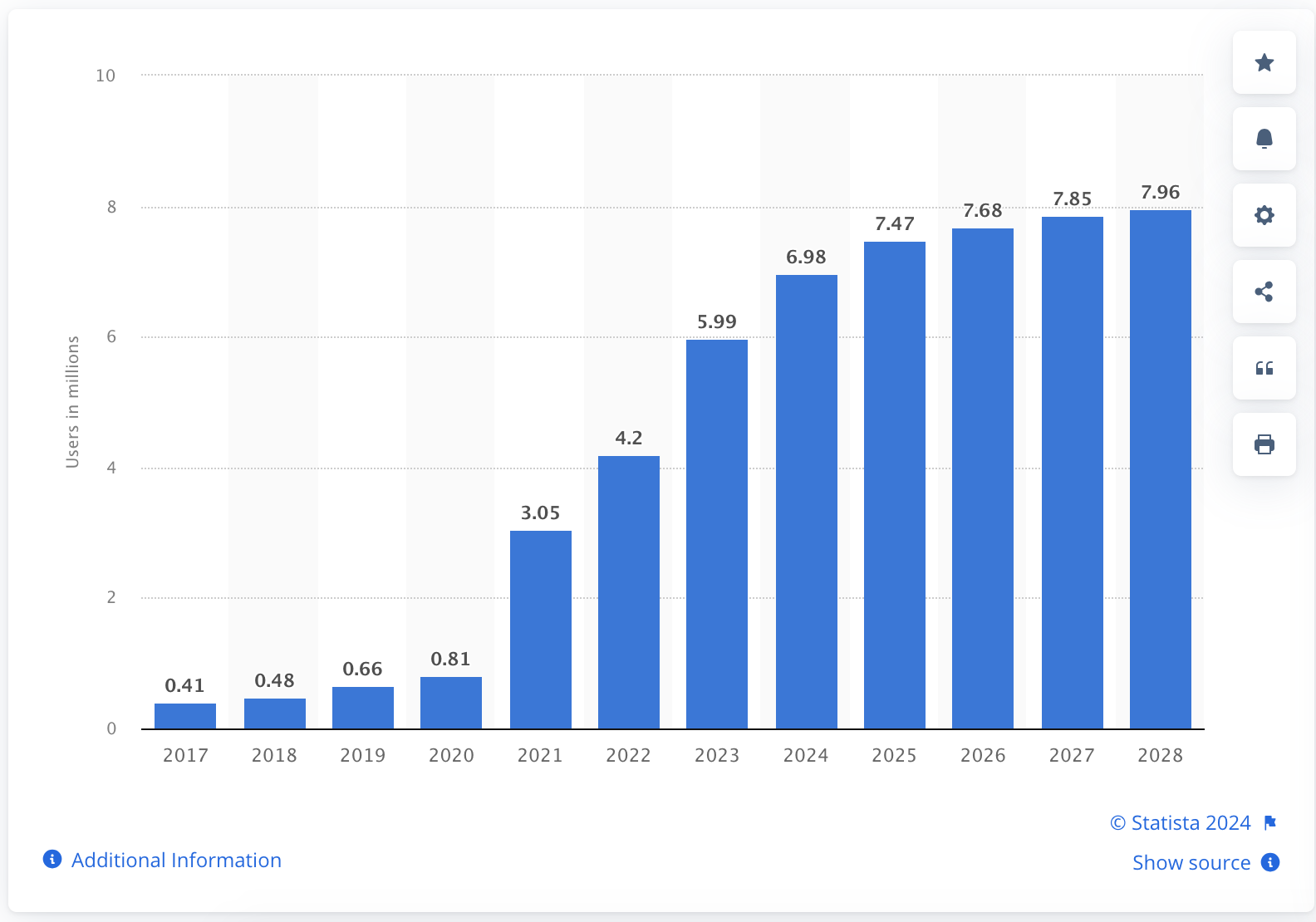 Ponadto, wraz z ożywieniem rynku krypto na przestrzeni ostatnich lat, liczba zainteresowanych aktywami w Polsce wzrosła. Jak widać z powyższego wykresu, predykcja wzrostu liczby użytkowników cyfrowych aktywów w Polsce jest szacowana na ok. 8 mln do końca 2028 roku. Niewątpliwie dane te wskazują, że kryptowaluty to realna szansa rozwoju dla Polski i jej gospodarki.