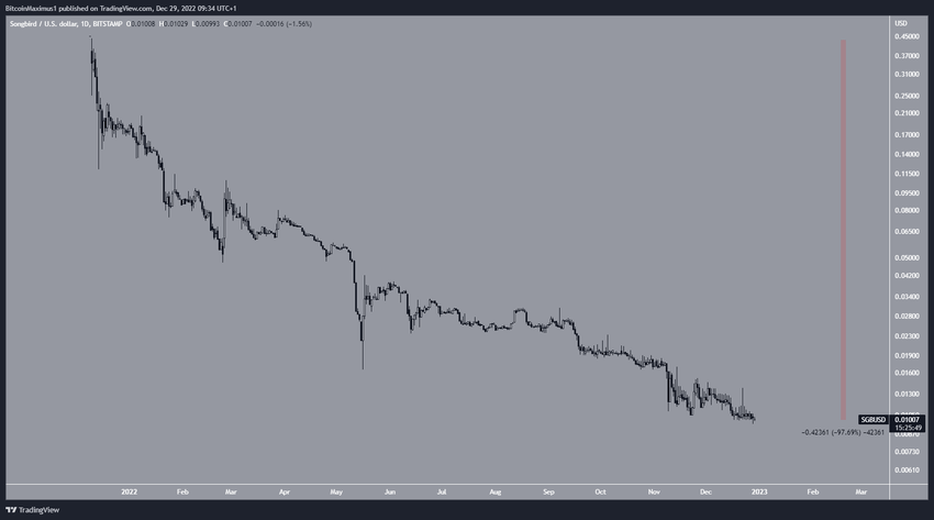 Cena SGB jest obecnie notowana na najniższym poziomie w historii, wynoszącym 0,01 USD. Nie ma sygnałów odwrócenia.