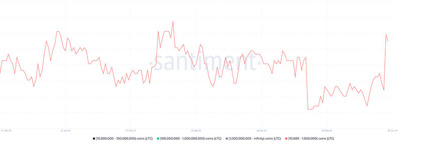 Od początku czerwca liczba wielorybów LTC posiadających od 10 000 do 1 000 000 tokenów wzrosła o 2%. Dla kontekstu, ta kohorta inwestorów obejmuje obecnie 613 adresów. Ostatnio tak dużą ich ilość zaobserwowano w marcu.