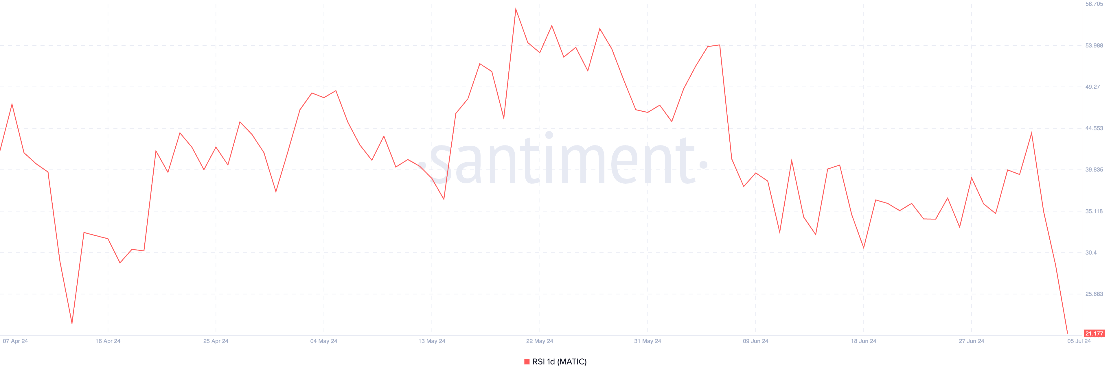 Co więcej, wskaźnik siły względnej (RSI) dla MATIC wynosi 21,17, co tylko wzmacnia powyższą niedźwiedzią perspektywę. Wskaźnik ten mierzy warunki wykupienia i wyprzedania aktywów na rynku. Waha się od 0 do 100, przy czym wartości powyżej 70 sygnalizują, że aktywa są wykupione i zbliża się korekta. Natomiast wartości poniżej 30 sugerują, że aktywa są wyprzedane i mogą być gotowe do odbicia.