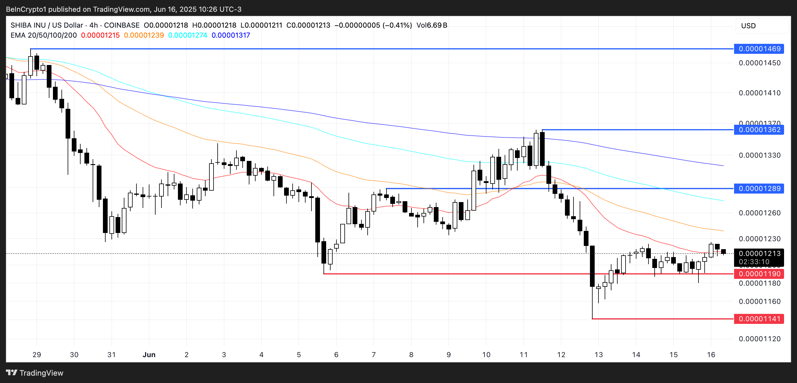 Kurs Shiba Inu utrzymuje kluczowe wsparcie, ale niedźwiedzie EMA powstrzymują byki