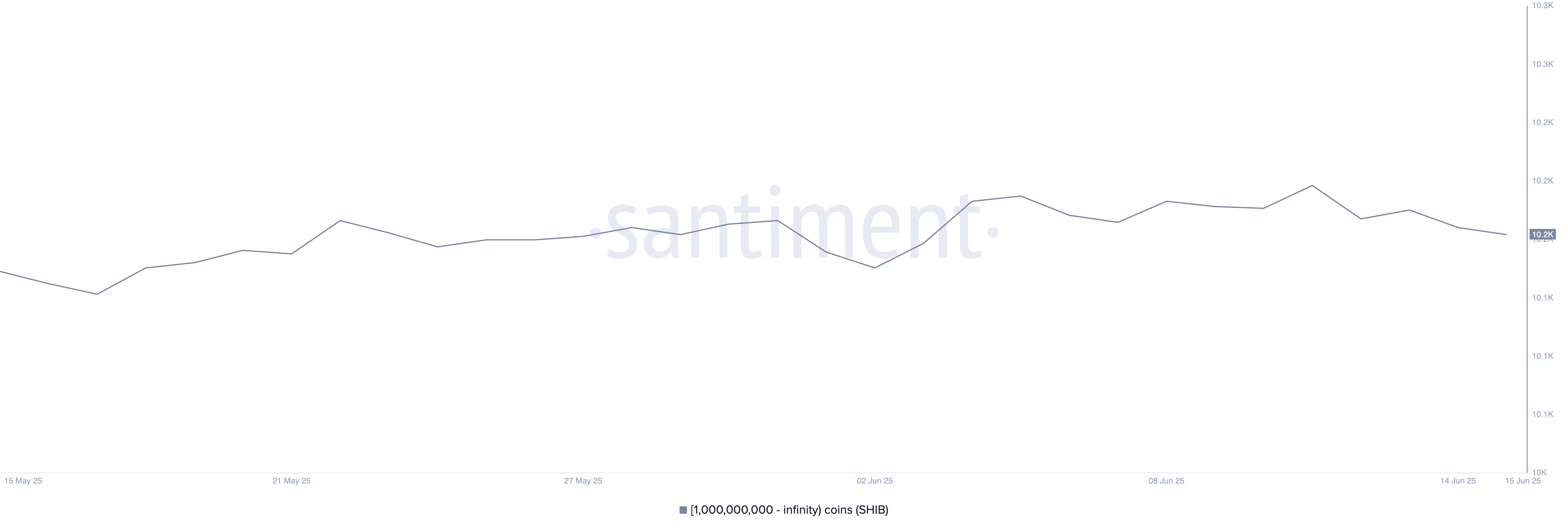 Liczba wielorybów Shiba Inu — portfeli posiadających co najmniej 1 miliard tokenów — stopniowo maleje od 11 czerwca, spadając z 10 259 do 10 231.