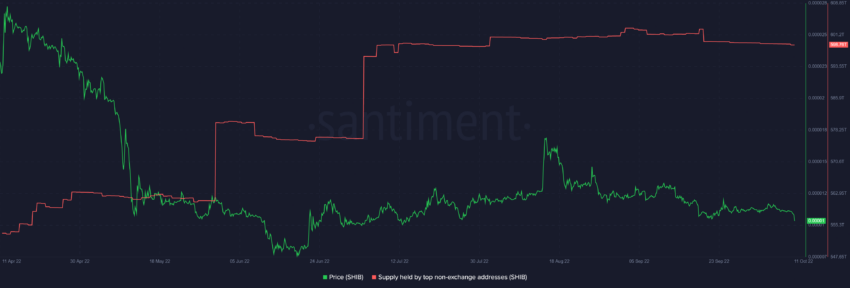 Jednak około 20 września miały miejsce duże odpływy z największych adresów pozagiełdowych. To sugeruje, że część z tych wielorybów prawdopodobnie wyszła z SHIB, gdy ceny spadły poniżej kluczowych poziomów wsparcia.