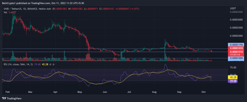 Patrząc na metryki on-chain SHIB i kurczący się wzrost sieci, cenę SHIB może czekać re-test niższego poziomu 0.00000850 USD. Jednakże, unieważnienie niedźwiedziego nastawienia, wraz ze wsparciem ze strony wielorybów ETH akumulujących SHIB, może doprowadzić do krótkoterminowych wzrostów. W tym przypadku, następny opór dla SHIB znajduje się w pobliżu poziomu 0.00001100 USD.