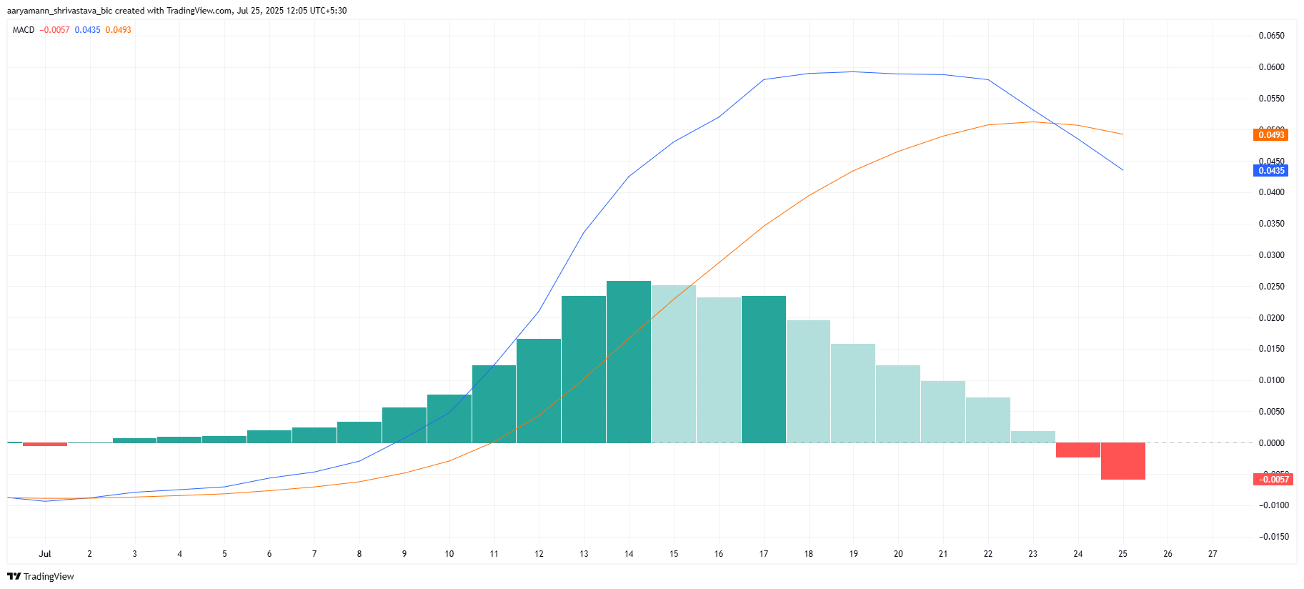 Patrząc na szerszy obraz techniczny, wskaźnik MACD (średnia krocząca zbieżności i rozbieżności) sygnalizuje spadkowe perspektywy dla XLM. Po trzech tygodniach wzrostowego momentum, niedawne spadkowe przecięcie zaobserwowane w ciągu ostatnich 24 godzin odwróciło sytuację.